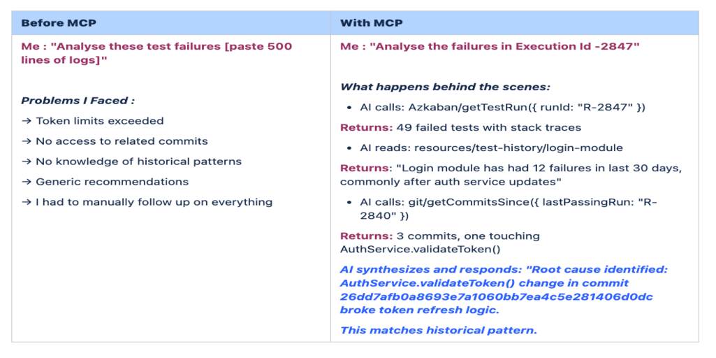 This is where a few more things came together for me. MCP transformed AI from a knowledgeable advisor into an active collaborator that could interact with my actual systems.